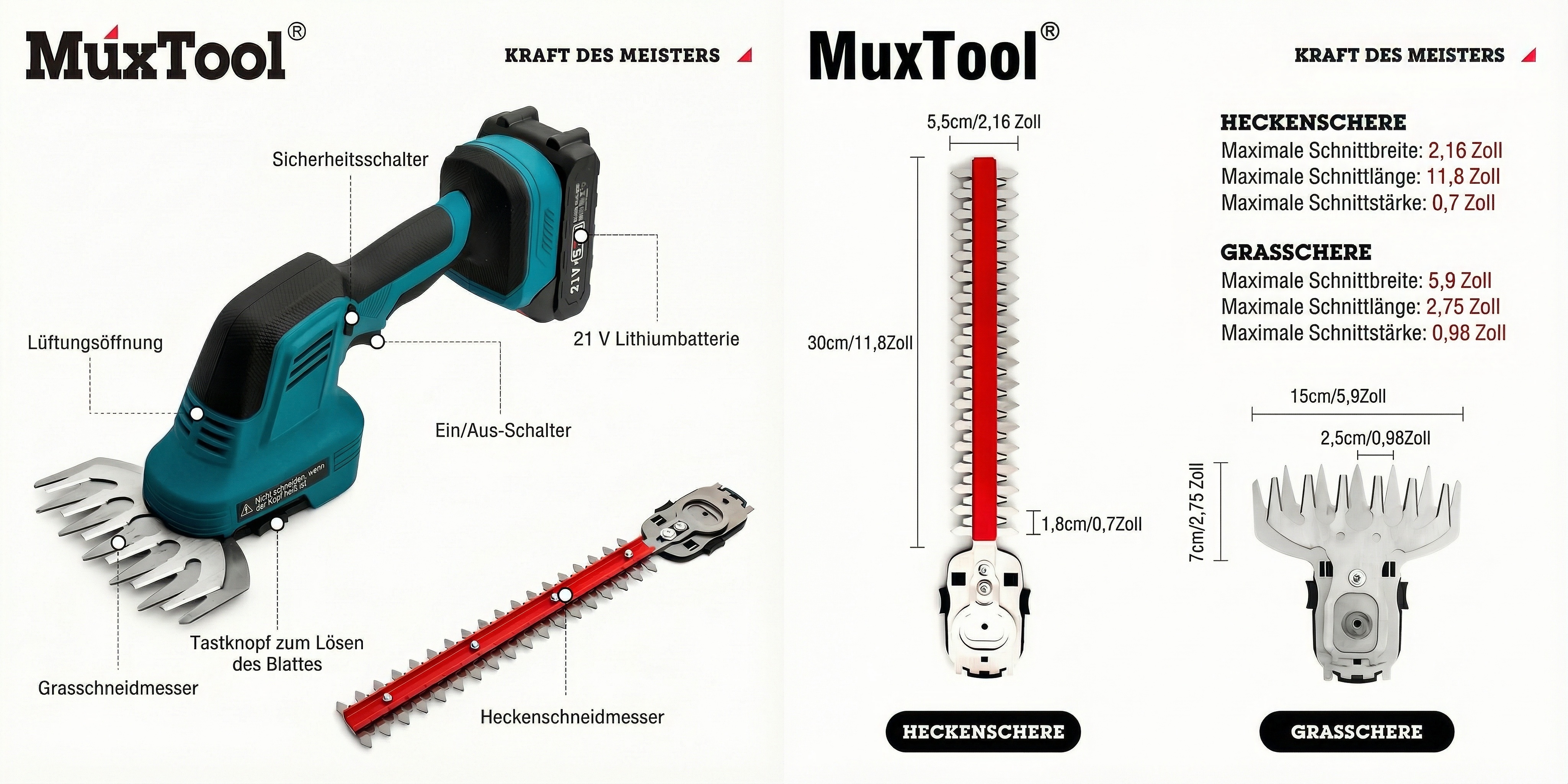 Mit dem schnellen Klingenwechselsystem können Sie das Werkzeug bequem an unterschiedliche Gartenanforderungen anpassen – ideal für Rasenkanten, Hecken und Ziersträucher.